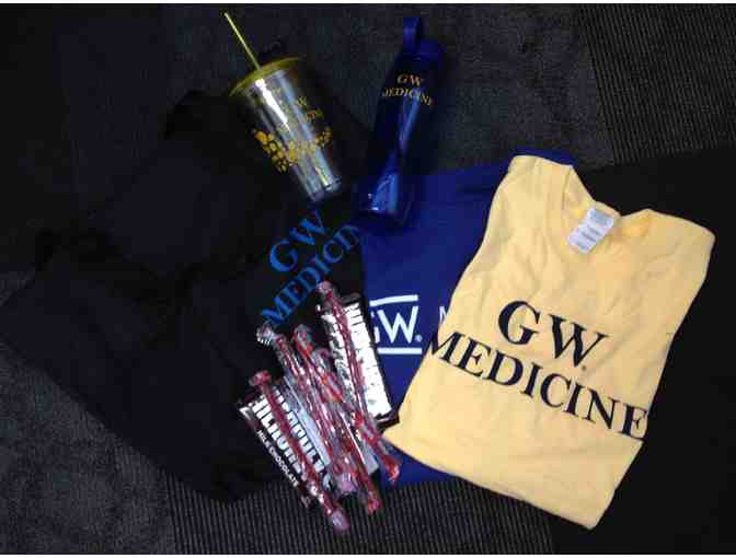 Show your GW Med pride with this tote bag, two water bottles, two t-shirts, and candy. Curtesy the admissions office.