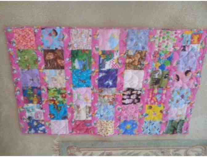 Pink childs patchwork quilt.