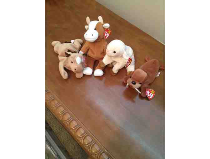 TY Beanie Babies - BESSIE (cow), DERBY (horse), EWEY (lamb), and TUSK (walrus)