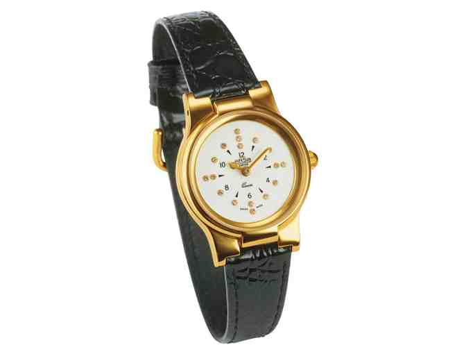 The Swiss made Tonneau's is the perfect accessory. Its two-tone gold and silver finish makes it easy to wear with any outfit and it will also match any piece of jewelry that you might wear. The silver face is accented by gold-tone Braille markings at the hours. These match the gold case, giving the watch a beautifully balanced two-tone finish. It is so comfortable to read thanks to the large space that surrounds the dial.