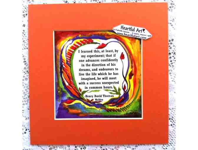8x8 print of Henry David Thoreau's quote from Walden: "I learned this, at least, by my experiment; that if one advances confidently in the direction of his dreams, and endeavors to live the life which he has imagined, he will meet with a success unexpected in common hours." - Art by Raphaella Vaisseau