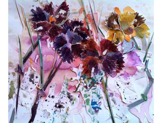 Watercolor collage, Spring Flowers aprox 7 X 10 inches. Matted, not framed.