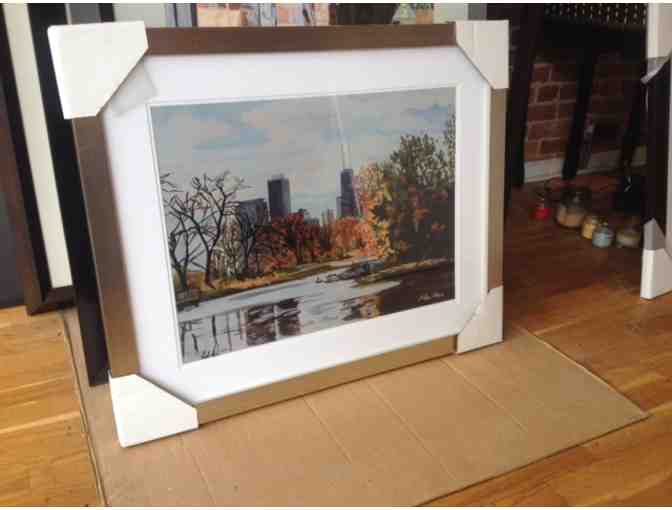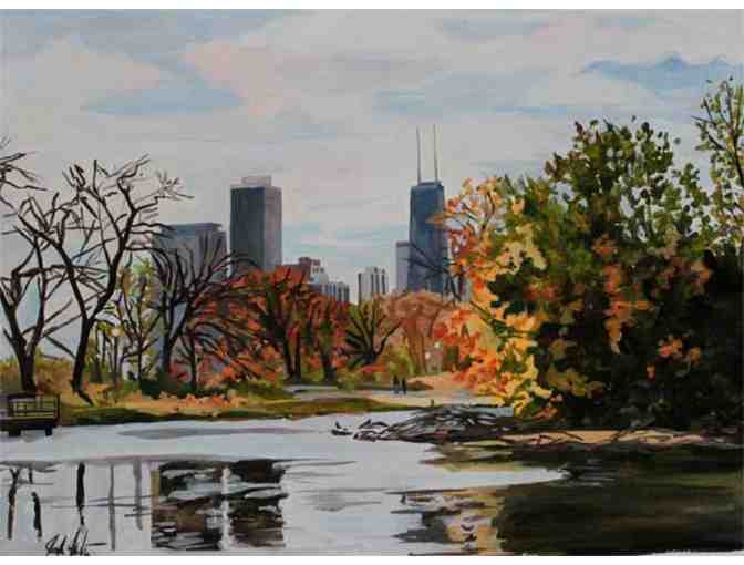 North Pond is a limited edition print of an original water color by Josh Moulton, a Chicago-based photo-realism and urban landscape painter.