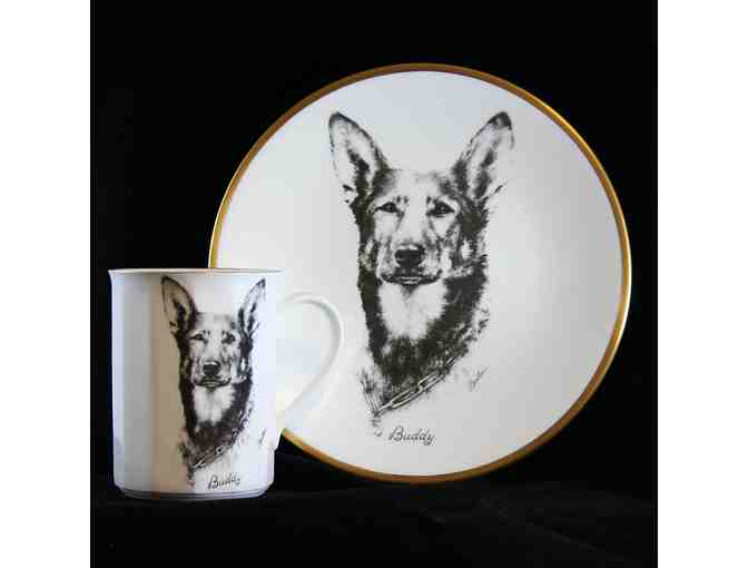 Boehm Porcelain Plate and Mug with Picture of Buddy, The First Seeing Eye Dog