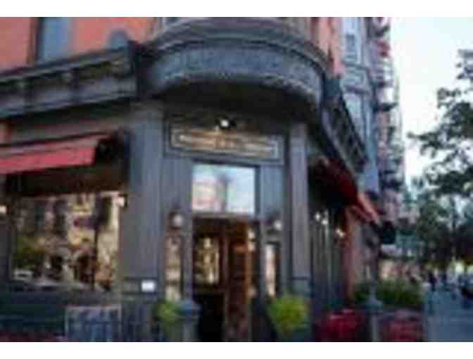 OF NOTE: Thistle Hill’s dining room is handsomely outfitted with original mahogany wood floors, exposed brick and ivory-colored walls lined with wainscoting. The centerpiece of this convivial restaurant is the antique 12-seat bar, which is framed by walls decorated with antique photos, prints and ephemera that represent Brooklyn’s storied history and iconic personalities. Much like TALDE and Pork Slope, the décor was curated by David and John with pieces that the pair has salvaged from antique dealers and the attics and basements of friends and family.