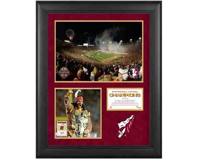 Commemorate the Florida State Seminoles' thrilling victory over the Auburn Tigers in the 2013 BCS National Champions game in Pasadena, California on January 06, 2014, with this framed collectible. Each piece comes designed with two photographs, descriptive plate, a team logo, and a piece of game-used football. It comes matted in team colors and framed in black wood.