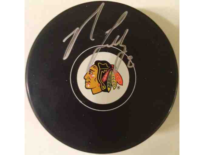 A autographed puck signed by Chicago Blackhawks Center, 2013 Stanley Cup Star, #26 Nick Leddy!