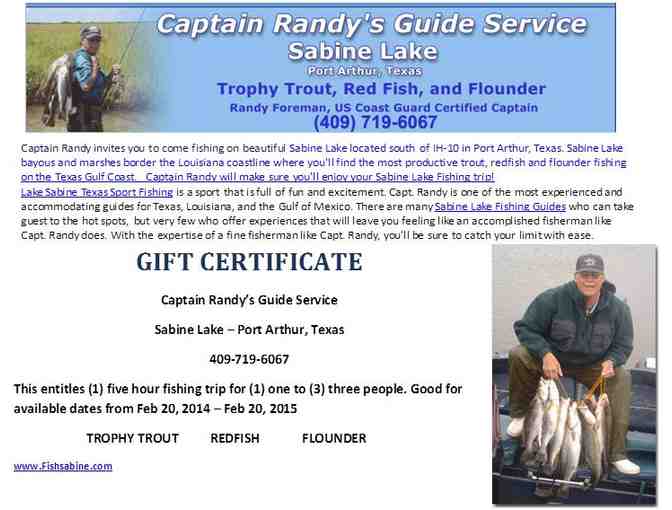 Captain Randy invites you to come fishing on beautiful Sabine Lake located south of IH-10 in Port Arthur, Texas. Sabine Lake bayous and marshes border the Louisiana coastline where you'll find the most productive trout, redfish and flounder fishing on the Texas Gulf Coast. Captain Randy will make sure you'll enjoy your Sabine Lake Fishing trip! Lake Sabine Texas Sport Fishing is a sport that is full of fun and excitement. Capt. Randy is one of the most experienced and accommodating guides for Texas, Louisiana, and the Gulf of Mexico.