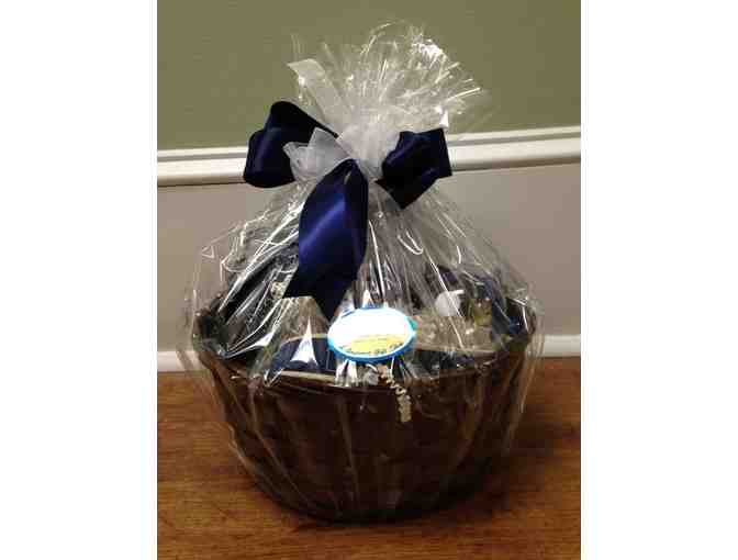 Gift basket full of charms from the Palmetto State of South Carolina. Items include: Palmetto decals, ornament, tumbler, belt, thimble, lanyard, koozies and croakies.