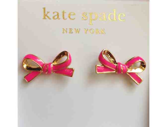 Doll yourself up with these elegant bow earrings. The mini-bow motif adds a pretty, playful accent to these Kate Spade New York stud earrings. They will make any ensemble feel more girly and flirty! Crafted in gold-tone mixed metal with flo pink enamel.