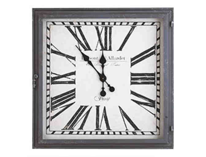 This wall clock is modeled after an antique street clock in Paris. Its handpainted design reflects a vintage look, as if it was taken directly from a 19th-century Parisian street. The glass door protects it from getting dirty and makes adjusting the time simple.