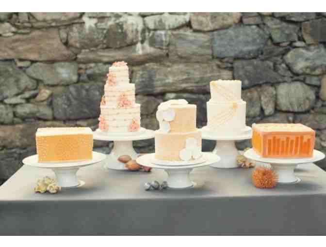 Good for One 9" Celebratory Cake. You may choose any flavor combination from the "Let Them Eat Cake" menu. All cakes are two layers with a simple buttercream piping in two colors of your choice. Require 48 hrs notice.
