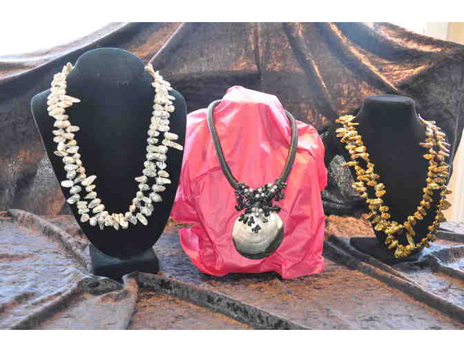 Black Shell and Pearl Choker and Striped Pearl Necklaces