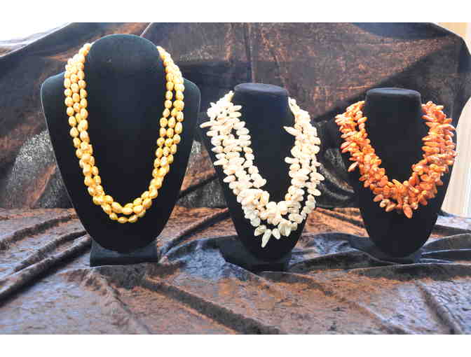 - 70" 13mm yellow orange pearl necklace.