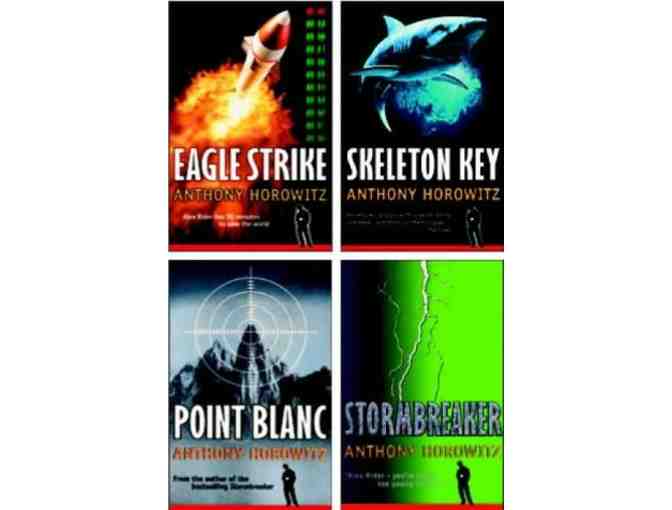 Five best-selling books by the young adult author Anthony Horowitz. Included are: Point Blank, Stormbreaker, Skeleton Key, Eagle Strike and Scorpia (hardcover).
