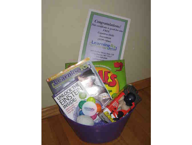 A Cognitive Skills Assessment valued at $199 and a basket of brainy games and other items, including: