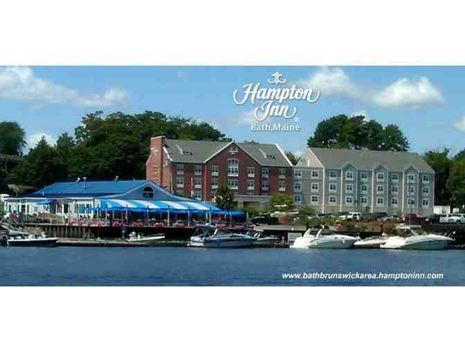 The Hampton Inn Bath is located at 140 Commercial Street, Bath, ME 04530. Certificate is for a one-night stay for two people.