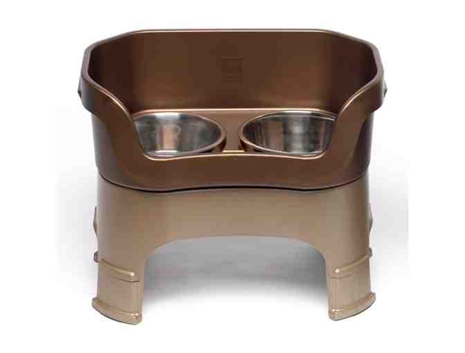 Neater Feeder Deluxe in Bronze with leg extensions for dogs 35-100+ lbs