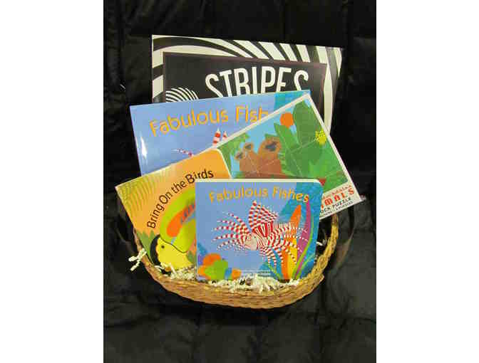 Signed animal books by Susan Stockdale and block puzzle. Includes two picture books and two board books.