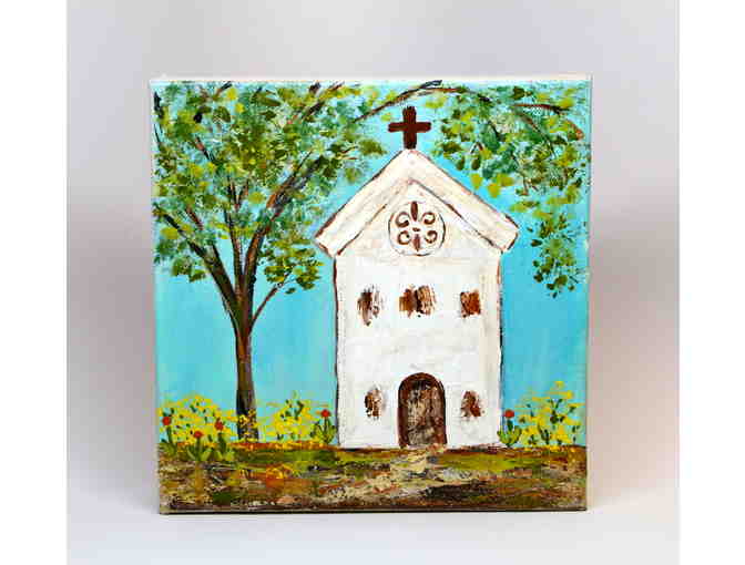 This is an 8 X 8 original, signed acrylic painting by Memphis artist, Rena Chiozza. Her eclectic style of painting includes the use of oils, acrylics and encaustic mediums. You may find her art on displayed in private homes and public buildings across the country.