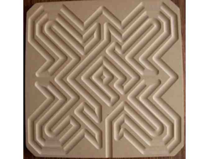 Rather than being a round path like most other labyrinth designs, the Ely causes the user to meander through various geometric shapes on the way to the center; a most interesting and unusual labyrinth journey. Each has a notch for hanging and engraved suggestions for use on the back.