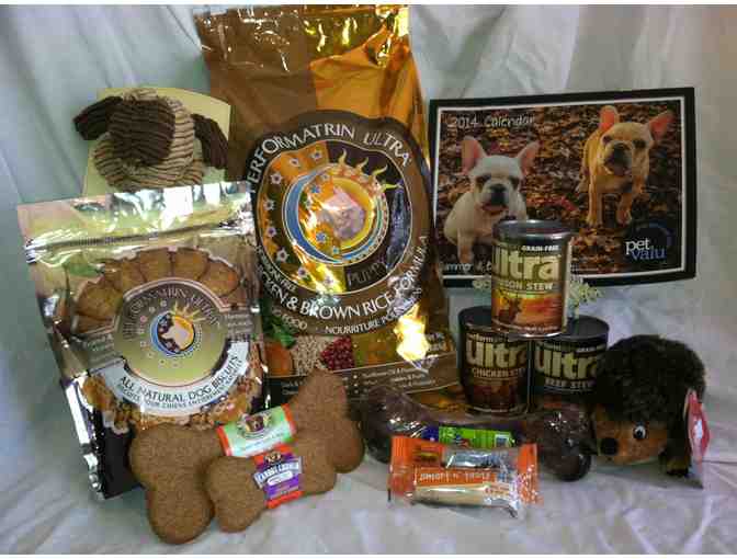 Does your dog have a birthday or special event coming up? Do you know someone who just adopted a new dog? Perhaps your dog has been especially good? Treat that lucky dog to this spectacular basket. It contains a gift card for $20 to PetValu; Performatrin Ultra all-natural biscuits; chicken and rice dry dog food; and venison, chicken, and beef stews. Additional treats and toys complete this bountiful basket. Your dog will be running to the mailbox looking for this one!