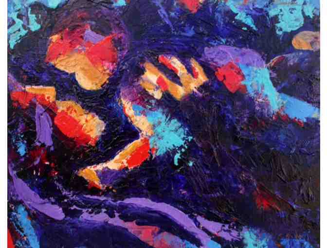 This contemporary, abstract work of art depicts a mother holding her little one. Yancy was born in Mexico City and has lived in Memphis for almost 20 years. She uses color saturation, wood surfaces, vivid acrylic tones, and anonymous images to create an effect that captures a moment, but allows you, the viewer, to imagine and draw your own conclusions. Her artwork can be found in private collections in the United States and abroad. Approximate measurements: 16" x 20"