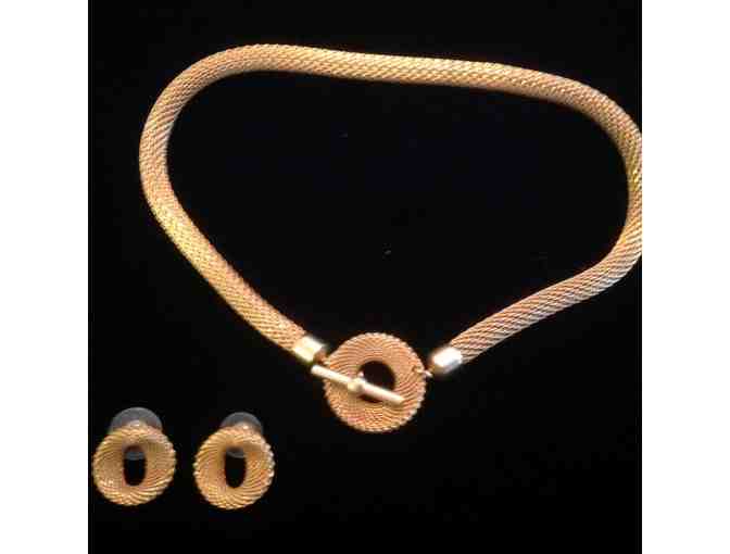 Unique custom designed choker and earrings made of bronze mesh designed by Erica Zapp. Erica Zapp Designs are produced in her studio in Newport, Rhode Island. Necklace is 19". Earrings are studs.