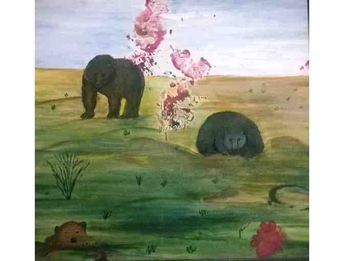 Many people are familiar with the Geetha R's artwork. This painting showcases a bear and an elephant along with bear paw print.