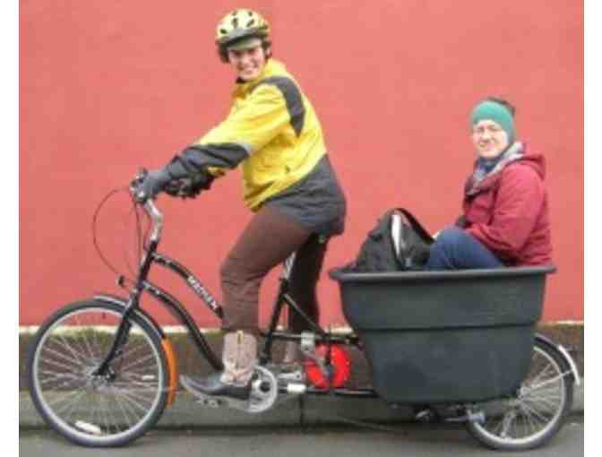 Get a week's rental of a cargo bike that can carry children or adults and all their stuff too! Familybike Seattle's Cargo Bike Rental Fleet contains several beautiful bikes, including an electric assisted Madsen, a Sun Atlas longtail, and a semi-recumbent tandem. All are safe and fun to ride, and make getting around town by bike eminently practical as well! And did we mention FUN?!?