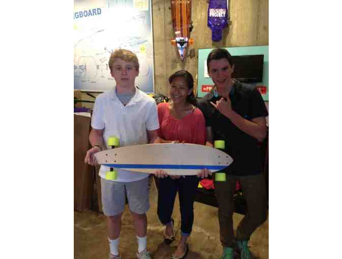 Throughout the trimester in Mr. Di Tanna's class, the students have been working with a downtown skateboard shop called Boardlife. With the help of the owners, the students have been learning about local, small business. And with the stores help, the class designed 4 separate skateboards, this being one of them. Whichever team's board attracts the highest bidder will win a prize!