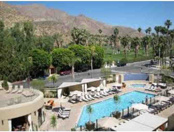 Two night stay at the Hyatt Regency Suites Palm Springs, where you can enjoy gorgeous views of the San Jacinto Mountains, enjoy a dip in the pool, perfect your swing on the putting green, or sip cocktails in the bar.  The Hyatt Regency Suites is the only all-suites downtown Palm Springs hotel.  You can ride a bike along the Heritage Trail, or visit the Palm Springs Art Museum, sculpture gardens, and galleries.  This getaway package for two includes all room-related taxes, as well as a ride on the Palm Springs Tramway, as you'll ascend 8500 feet above the desert floor to a pristine wilderness landscape.  A 30-day advance reservation is required, and the package is valid for 12 months from date of issue.