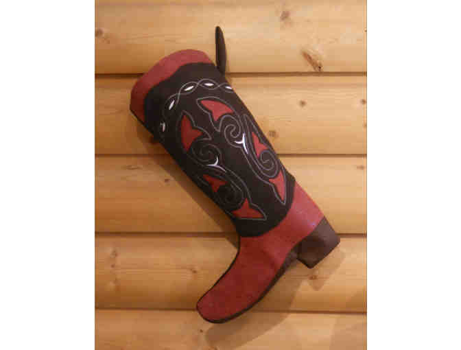 These large colorful boot stockings are in assorted colors. They are great for Christmas or simply for western decor.