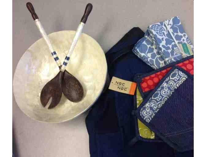 Zen your home and garden with a collection of items from Zen Zen Garden Home. You'll receive three pot holders, a Capiz bowl and salad servers, designer napkins, and aprons.