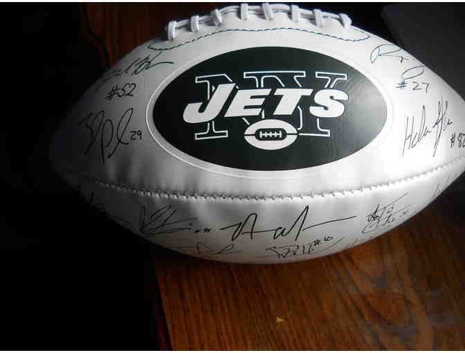 A laser facsimile 2013 New York Jets team signed replica football, including players Geno Smith, Chris Ivory, Kellen Winslow, Santonio Holmes, Jerome Kerley, David Harris, Demonico Davis, Sheldon Richardson and Nick Mangold.