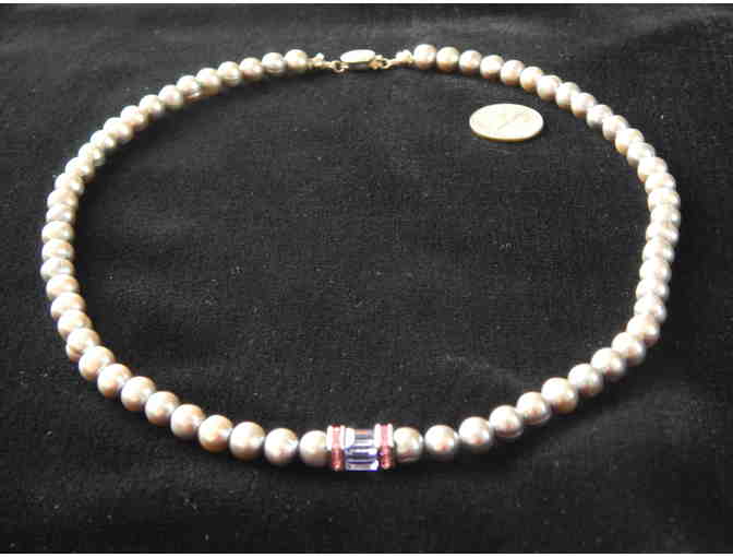18" Gray freshwater pearl necklace with lavender Swarovksi crystal.