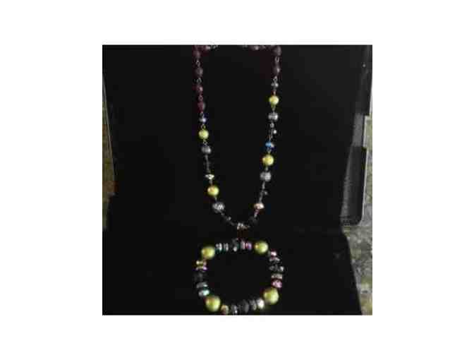 Purple, Green and Blue Crystal Beaded Necklace and Matching Bracelet.