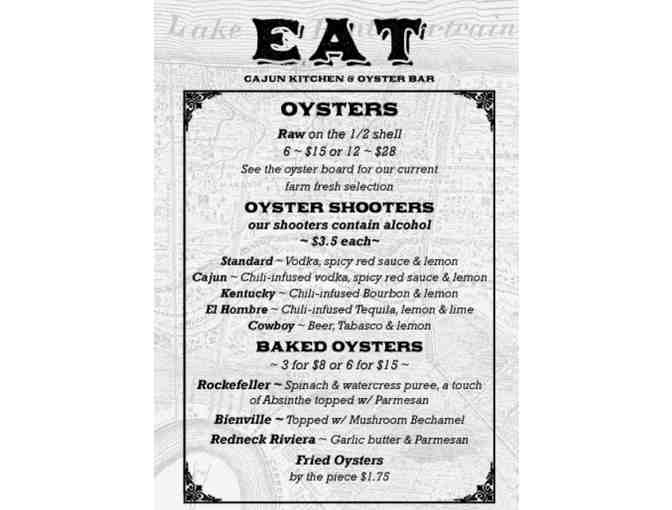 Eat: An Oyster Bar on N. Williams is unabashedly big, bold, and honest cooking from America's only true native cuisine, a little bit of the Dirty South right here in the Northwest. Specialties are Cajun-Creole Food and Farm Fresh Oysters. Use this certificate by April 19, 2015.