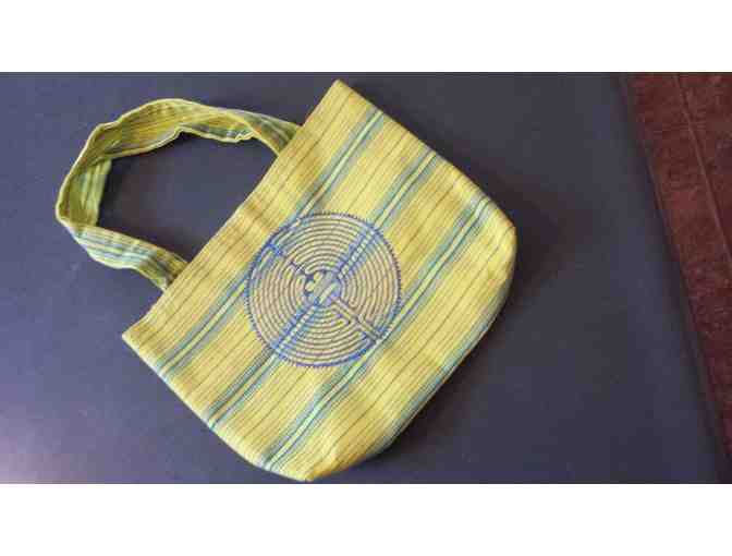 Small cloth bag with handles, embroidered with labyrinth design. New. Never used. One of a kind. See photo for detail.