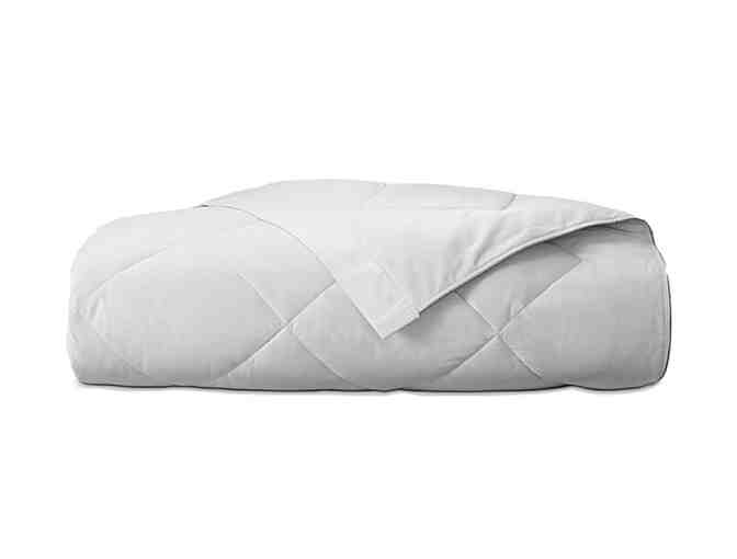 This white sleep number blanket has Outlast Adaptive Comfort material that is designed to balance the temperature swings that can cause restless nights to help you sleep more comfortably each and every night. The Outlast Adaptive Comfort material also has the ability to absorb, store and release heat. Hypoallergenic down alternative fill.