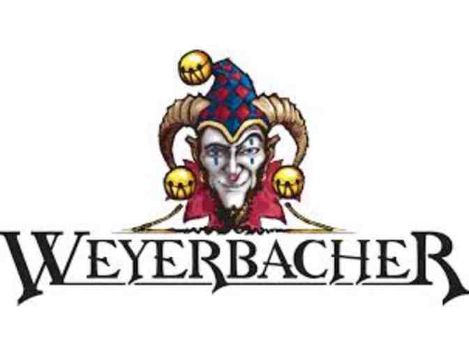 *One of Weyerbacher’s newly redesigned pint glasses featuring a full color Jester graphic and a nucleated design in the bottom to keep the bubbles coming while you drink your pint!