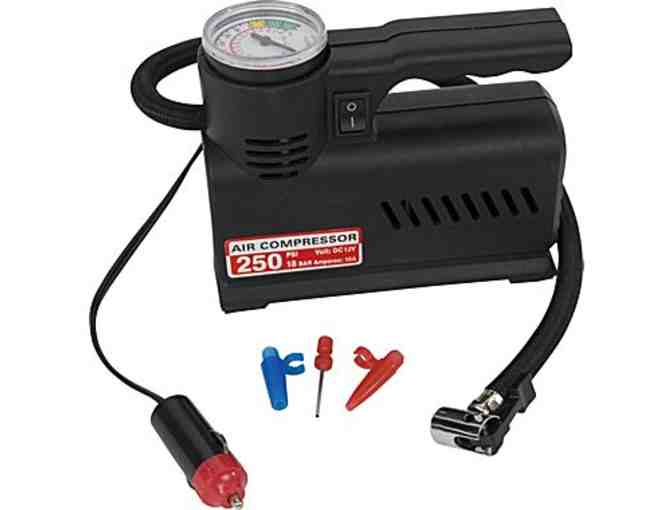 Inflate a tire, a basketball or an air mattress with ease with this multiple function portable air compressor. With 250 PSI, this handy tool features a pressure gauge, .45 meter air hose, and a three-meter cord that plugs into a car’s 12 volt power outlet. It comes with a three piece nozzle adapter, so you’ll be prepared to inflate, or re-inflate, pretty much anything!
