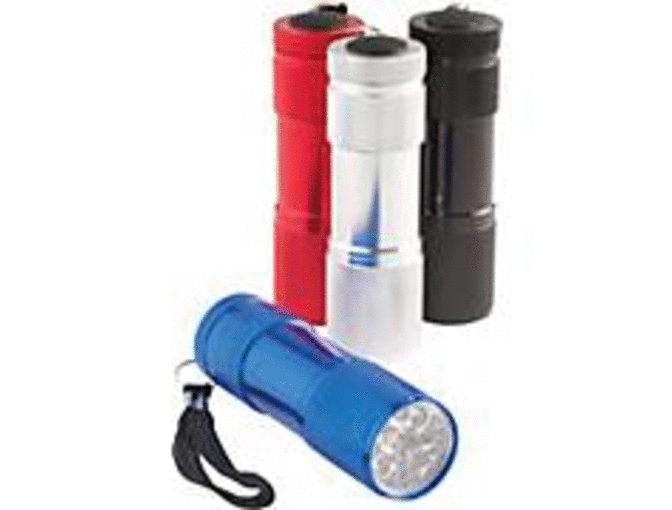 No more searching in the dark – these 3.5 inch LED flashlights each contain nine LED bulbs for wide, even illumination! Keep one in your car, one on your night stand, one in the kitchen, one by your back door – even a power outage won’t leave you in the dark! These four compact flashlights come in assorted colors and include convenient nylon wrist straps and push button switches. Three AAA batteries for each flashlight are included.