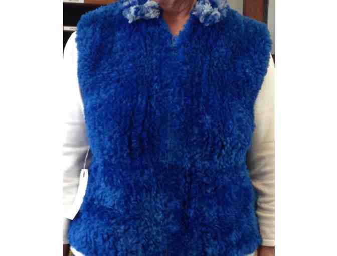 Beat the Colorado cold with the beautiful dyed blue sheared beaver vest.