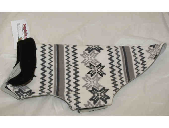 Do you ever worry that your dog will shiver in the cold months? Lose your fear and gain peace of mind with this fleece from Doggy Dudds. This grey, white, and black winter themed fleece has a cozy collar to keep your pup's neck warm in the frigid seasons. The Doggy Dudds motto is “Happiness is a Warm Puppy” -- but a safe and warm puppy is the happiest puppy of all!