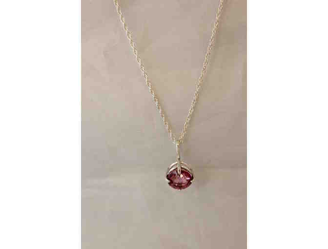 Four prongs set off this deep pink topaz gem hanging from a 20 inch, delicate sterling silver rope chain. The topaz is set high in a basket setting to show off the brilliance of the stone. If you or someone you know loves pink, you will not go wrong with this attractive necklace.