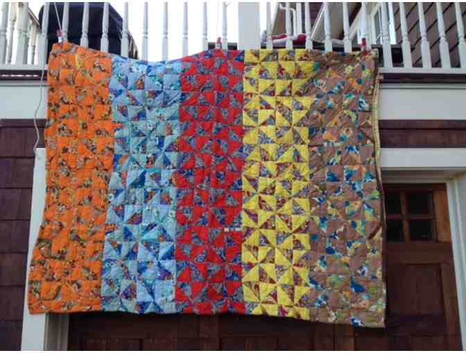 Beautiful hand-pieced vintage quilt with classic pinwheel pattern. Hand-pieced; hand-quilted.