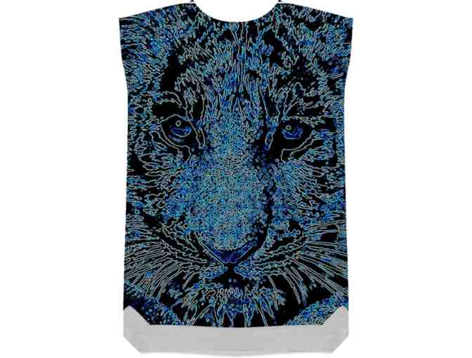 *"ECO FRIENDLY, TIMELESS CLASSIC!": UNIQUE CUSTOM ART SHIFT DRESS: "BLUE TIGER"