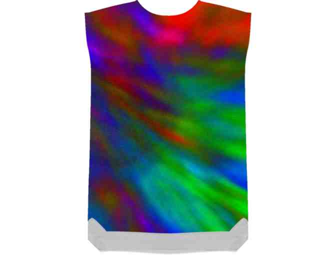 ART WORK will cover the entire front and back / The backside will mirror the front / Side seam pockets and an uneven hem / Body is 100% tencel