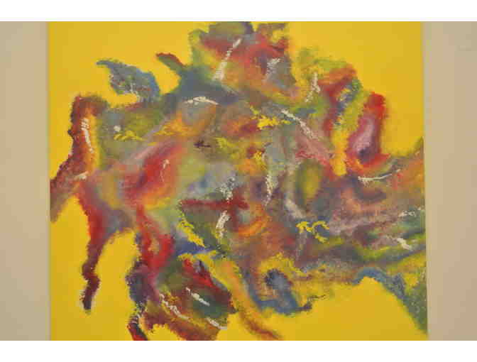 Enjoy this vibrant abstract painting of a tropical blowfish by artist Kelly Wayne, 48" x 48".